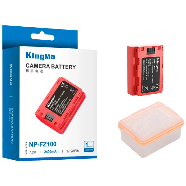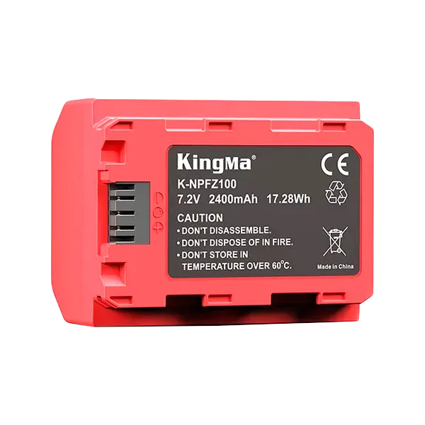Аккумулятор Kingma NP-FZ100 2400 mAh — это надёжная литий-ионная батарея с ёмкостью 2400 мА·ч и напряжением 7,2 В, предназначенная для использования в камерах Sony серии Alpha, включая популярные модели a7 III, a7R III, a7 IV, a9 II и другие устройства, совместимые с форматом NP-FZ100. Благодаря энергоёмкости около 17,28 Вт·ч он обеспечивает продолжительное время работы при фото- и видеосъёмке, оставаясь при этом компактным и лёгким: габариты составляют 51,7 × 38,7 × 22,7 мм, вес около 79 г, что полностью соответствует стандарту оригинальной батареи. Встроенные системы многоуровневой защиты предотвращают перегрев, перегрузку, короткое замыкание и перенапряжение, гарантируя стабильную и безопасную эксплуатацию. Аккумулятор может заряжаться в камере через оригинальное зарядное устройство Sony или через совместимые внешние устройства, что делает его удобным для работы в студии и в поездках. Kingma NP-FZ100 2400 mAh является практичным выбором для фотографов и видеографов, которым важны автономность, совместимость и долговечность оборудования.