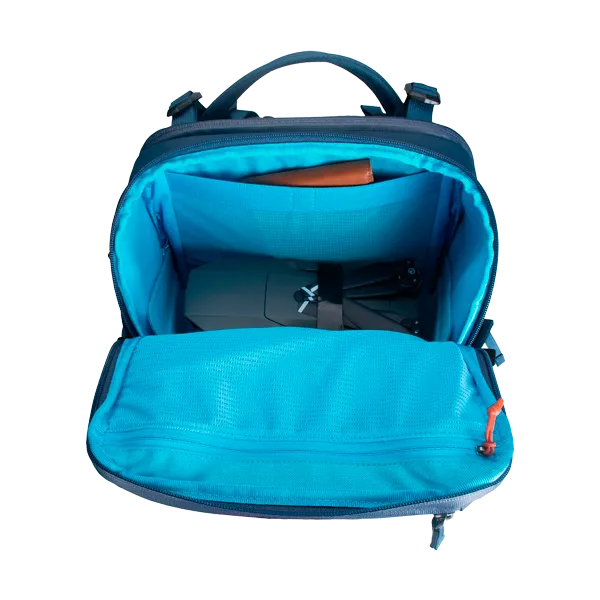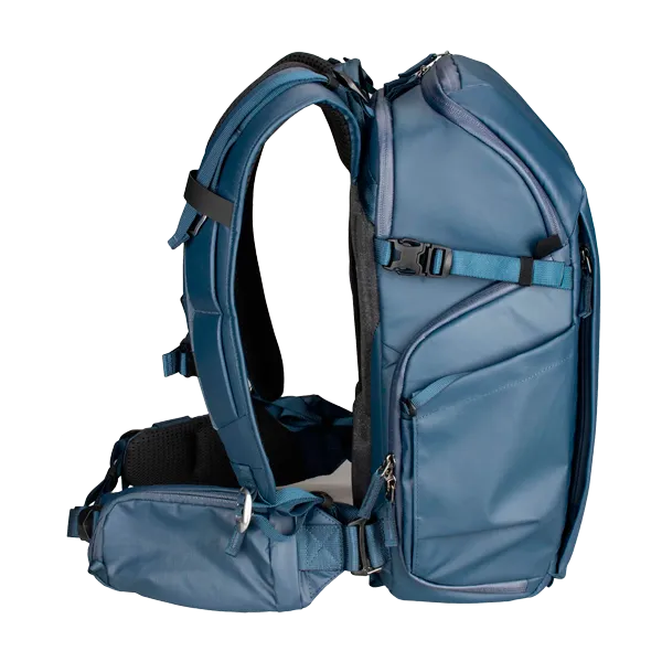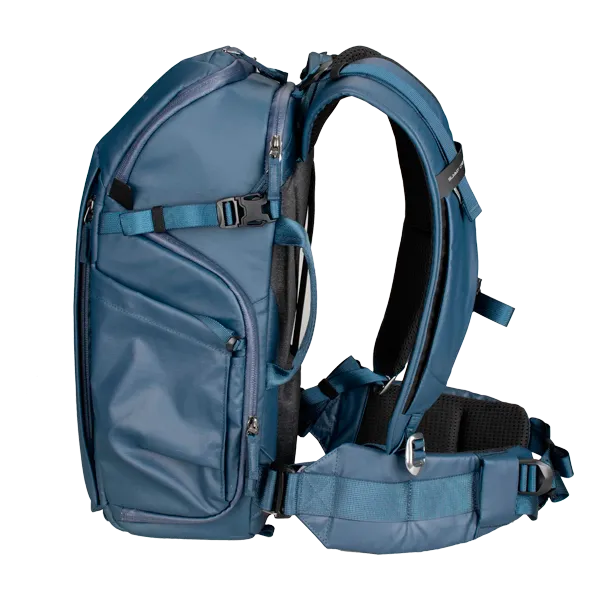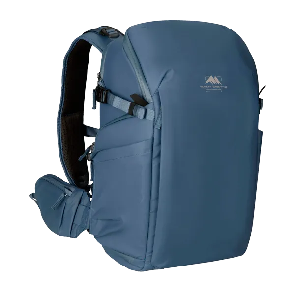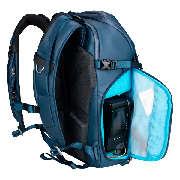 Фоторюкзак Summit Creative Metropolis 22L Синий (SUM-METROPOLIS22L-BLUE) создан для фотографов и видеомейкеров, которым важно сочетание современного дизайна, функциональности и надёжной защиты техники. Объём рюкзака составляет 22 литра — этого достаточно, чтобы разместить зеркальную или беззеркальную камеру с несколькими объективами, ноутбук до 15–16″, аксессуары и дрон. Конструкция разделена на два основных отсека: верхний предназначен для личных вещей, а нижний — для фотооборудования, обеспечивая удобный боковой и задний доступ через защитное swing-открытие. Рюкзак выполнен из прочного водоотталкивающего нейлона 420D и оснащён молниями YKK. Жёсткий алюминиевый каркас сохраняет форму, а эргономичная задняя панель из 3D EVA-материала обеспечивает вентиляцию и комфорт при длительном ношении. Регулируемые плечевые лямки, съёмный поясной ремень с карманом и боковое крепление для штатива делают использование максимально удобным. Внешние размеры модели составляют примерно 44,5×28,5×23 см, масса около 2 кг.