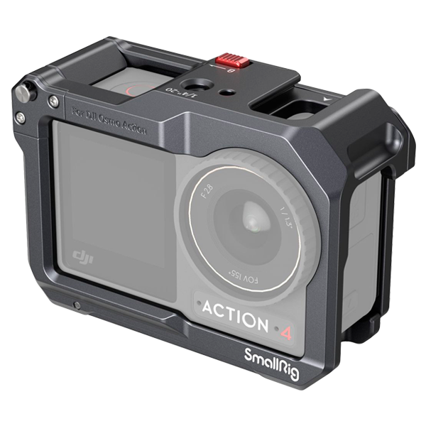 SmallRig 4119C — полноразмерная клетка для экшн-камер DJI Osmo Action 5 Pro /4 /3, предназначенная для дополнительной защиты и установки на камеру необходимых для съемки аксессуаров и устройств. Конструкция точно повторяет геометрию совместимых моделей, обеспечивает плотную посадку и защищает камеру от механических воздействий, сохраняя полный доступ к сенсорным экранам, кнопкам управления, объективу и аккумуляторному отсеку без необходимости демонтажа клетки. Клетка выполнена из прочного алюминиевого сплава с силиконовыми вставками, что снижает вес и предотвращает появление царапин на камере. Фиксация осуществляется с помощью быстросъёмного защёлкивающегося механизма, позволяющего оперативно устанавливать и снимать камеру. Клетка оснащена магнитными интерфейсами в нижней и боковой части, совместимыми с оригинальными магнитными адаптерами DJI, что упрощает смену ориентации съёмки между горизонтальным и вертикальным положением. Для подключения дополнительного оборудования предусмотрены крепления 1/4"-20, а также холодный башмак для установки микрофона, осветителя или приёмника DJI Mic.