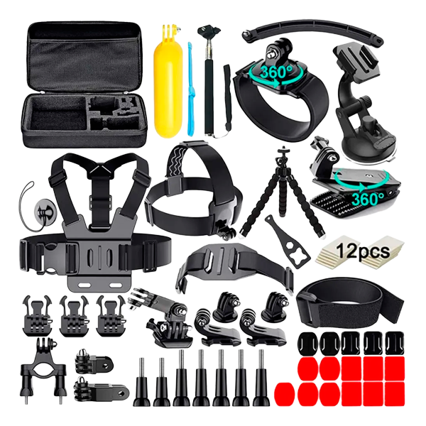 Обновленный набор аксессуаров 62 в 1 для экшн-камер GoPro включает все необходимое для профессиональной съемки в любых условиях — от горных склонов до подводных приключений. В комплекте представлены крепления, фиксаторы, ремни, держатели и аксессуары для съемки с руки, на голове, груди или шлеме, а также элементы для установки камеры на транспорт и водное оборудование. Новая версия дополнена прочным стальным тросом длиной 20 см с кронштейном для надежной страховки камеры и пластиковым держателем пульта GoPro, который удобно крепится на трубу диаметром 19–21 мм. Набор включает монопод, гибкий трипод, поплавок, крепления с 3М-наклейками, страховочные застежки, антизапотевающие вставки и вместительный кейс размером 32,5×22,5×6 см для удобного хранения и транспортировки. Комплект 62 в 1 идеально подходит для путешественников, спортсменов и блогеров, делая съемку с экшн-камерой GoPro максимально комфортной, безопасной и разнообразной.