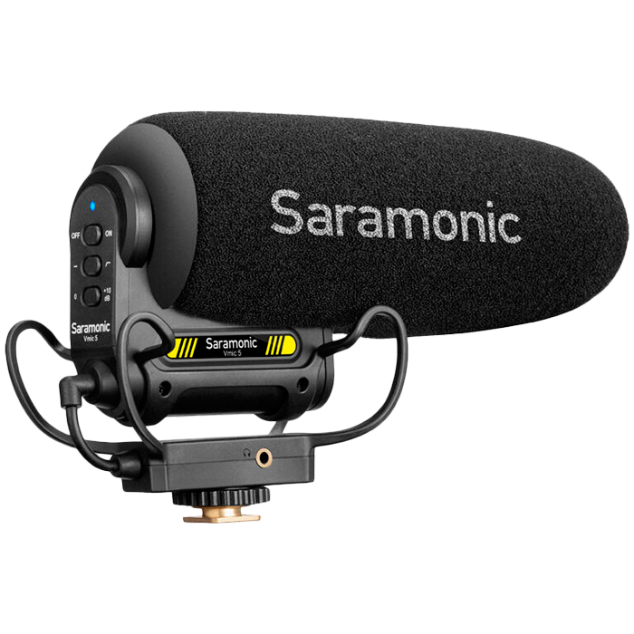 Saramonic Vmic5 — профессиональный суперкардиоидный конденсаторный микрофон-пушка для установки на камеру, совместимый с зеркальными и беззеркальными аппаратами и внешними аудиорекордерами с 3,5-мм входом. Он отлично решает главную проблему видеосъёмки — получение чистого и направленного звука без посторонних шумов, что особенно важно для влогеров, операторов динамичной съёмки с рук и журналистов. Полноразмерная интерференционная трубка длиной 126 мм, диаметром 23 мм и капсулой 14 мм обеспечивает широкий диапазон частот от 20 Гц до 20 кГц и качественный студийный звук с чётким фокусом на голосе говорящего при эффективном подавлении шумов сбоку и сзади. Двухступенчатое усиление 0/+10 дБ помогает подстроить уровень сигнала под любую камеру, а фильтр низких частот 150 Гц убирает нежелательный гул и низкочастотные помехи, сохраняя естественный тембр голоса. Встроенный литий-ионный аккумулятор ёмкостью 2000 мАч обеспечивает до 150 часов непрерывной работы, а разъём USB-C поддерживает внешнее питание. В комплекте идут поролоновая и меховая ветрозащиты для съёмки на улице.