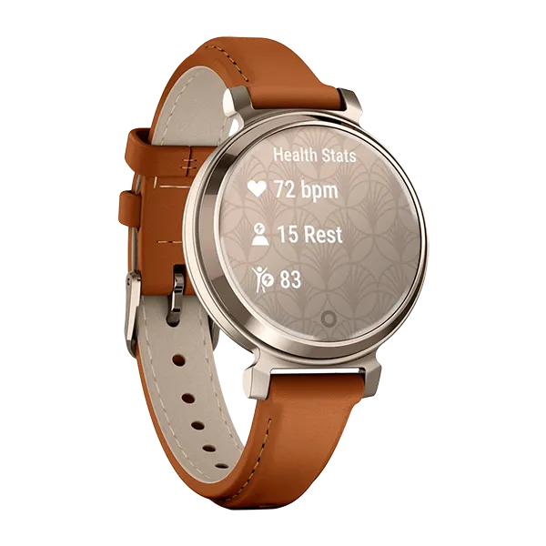 Garmin Lily 2 Classic — это элегантные женские смарт-часы, сочетающие утончённый дизайн с современными функциями для здоровья и фитнеса.Модель выполнена в кремово-золотистом алюминиевом корпусе с узорчатым стеклом Corning® Gorilla® Glass 3 и оснащена кожаным ремешком коричневого цвета. Компактный корпус диаметром 35 мм и весом всего 21,4 г делает часы идеальными для повседневного ношения. Сенсорный монохромный дисплей (240×201 пикселей) активируется при касании или повороте запястья.Часы обеспечивают до 5 дней автономной работы и совместимы с iPhone и Android.Функции включают круглосуточный мониторинг пульса, уровень энергии Body Battery, оценку сна, отслеживание стресса, женское здоровье и пульсоксиметрию.Встроенные спортивные приложения поддерживают кардио, йогу, силовые тренировки и танцевальный фитнес. Garmin Pay позволяет осуществлять бесконтактные платежи, а подключение к GPS смартфона обеспечивает точное отслеживание активности на открытом воздухе.Водонепроницаемость до 5 ATM делает часы подходящими для плавания.