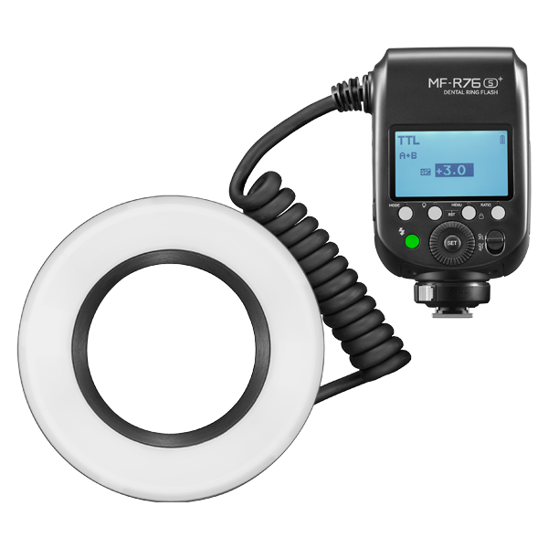 Вспышка для макросъемки Godox MF-R76S+ TTL для Sony — профессиональная кольцевая вспышка для стоматологии, разработанная как специализированное решение для дентальной фотографии и макросъемки с акцентом на точность, стабильность и корректную цветопередачу. Модель обеспечивает равномерное бестеневое освещение, необходимое для интраоральной и экстраоральной съемки, фиксации этапов лечения и демонстрации эстетических результатов. Поддержка автоматического TTL-режима для камер Sony упрощает рабочий процесс и позволяет получать предсказуемый результат даже при быстром темпе съемки, а ручная регулировка мощности от 1/1 до 1/256, высокоскоростная синхронизация HSS и синхронизация по первой и второй шторке расширяют контроль над экспозицией. Цветовая температура 5900 K обеспечивает естественную передачу оттенков. Кольцевая головка крепится на объектив с помощью адаптеров 49–77 мм, управляющий блок устанавливается в горячий башмак камеры, а литий-ионный аккумулятор обеспечивает до 550 импульсов на полной мощности с быстрой перезарядкой 0,1–1 секунды.