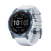 Смарт-часы Garmin Fenix 7 Sapphire Solar титановый синий минерал DLC с белым ремешком