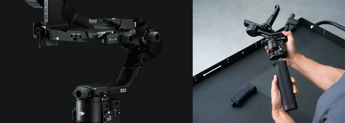 Отдельного внимания заслуживает новая рукоятка-адаптер, через которую реализовано прямое управление стабилизатором и камерой. DJI подчёркивает, что такое решение расширяет возможности взаимодействия при съёмке с нижних ракурсов и в ограниченных пространствах, делая управление более интуитивным и снижая необходимость менять хват. При этом компания уточняет, что рукоятка не входит в стандартную комплектацию DJI RS 5 и предлагается либо как отдельный аксессуар, либо в составе совместимого комплекта.
